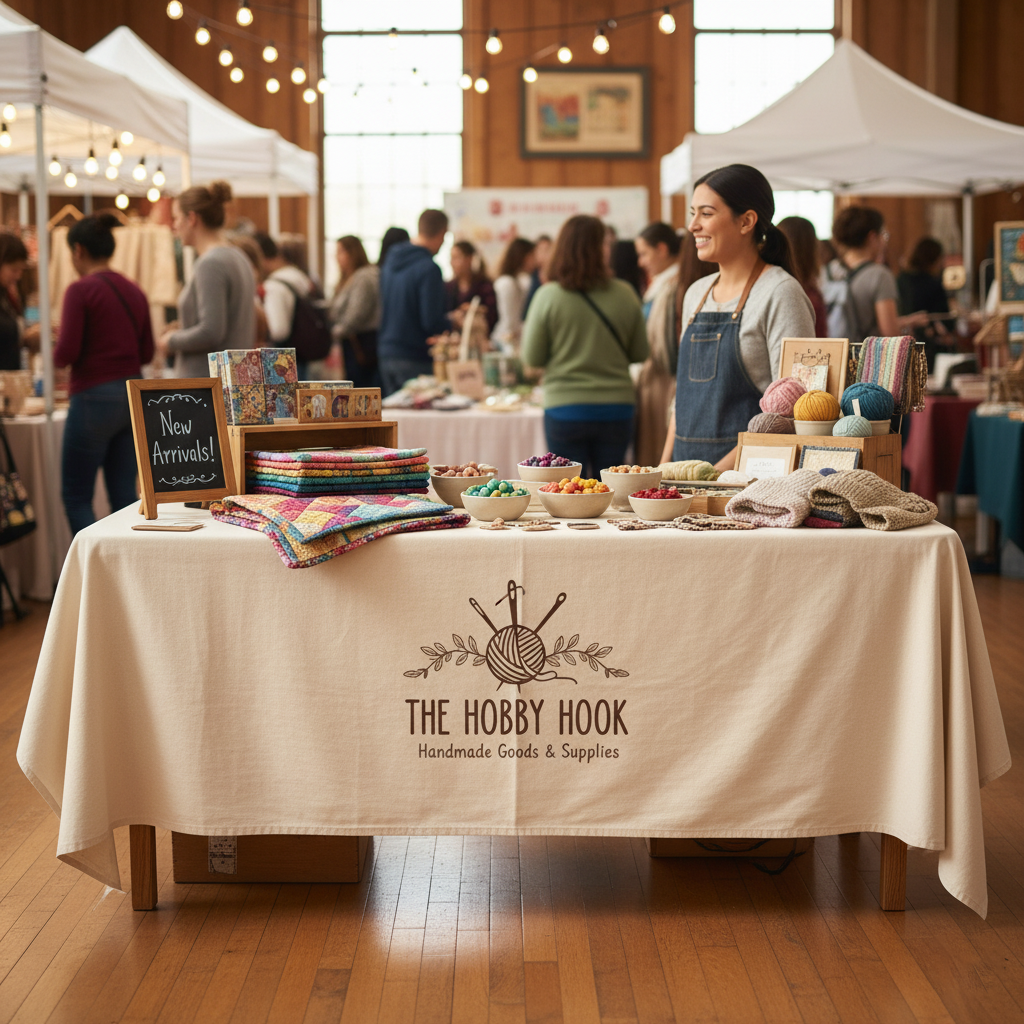 Custom Tablecloth for Craft Fairs & Handmade Markets – Personalized Booth Table Covers with Your Shop Name or Logo